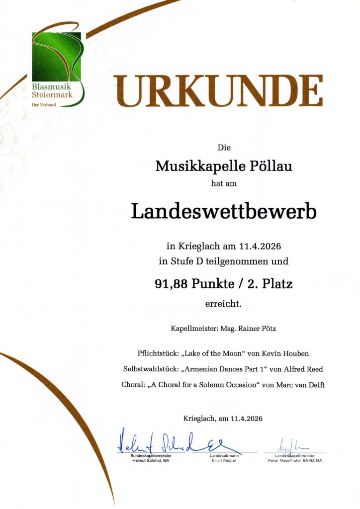 Der 11. April 2026 wird in der Chronik der Musikkapelle Pöllau einen Ehrenplatz einnehmen.